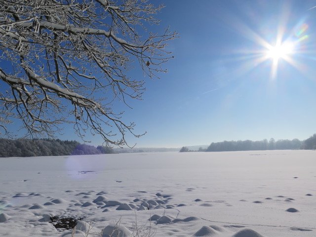 Geplant war " eine kleine leichte Wanderung am Dreifelder Weiher. Was nutzt schon die Planung einer "kleinen, leichten Wanderung", wenn dann gefühlte 3 Meter Neuschnee und nicht geräumte Wege (waren es überhaupt Wege?) das "Klein" und das "Leicht" torpedieren. Tapfer sind wir durch den Neuschnee gestiefelt. Belohnt wurden wir mit strahlendem Sonnenschein und einer Pause mit Eierlikör. Es war anstrengend aber wirklich schön. Zu guter Letzt sind wir noch im "Haus am See" eingekehrt und konnten uns aufwärmen und stärken. Eine gelungene Winterwanderung.
